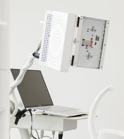 ATP38®, ein exklusives, schmerzfreies und nicht-invasives Konzept. Es ist eine regenerative Lösung zur Schmerzlinderung, sie reduziert Entzündungen, beschleunigt die Wundheilung (Knochen und Zahnfleisch) und behandelt viele Krankheiten. Die Gewebebiostimulationstechnik mit diesem Gerät wird als LLLT (Low Level Light Therapy) bezeichnet.